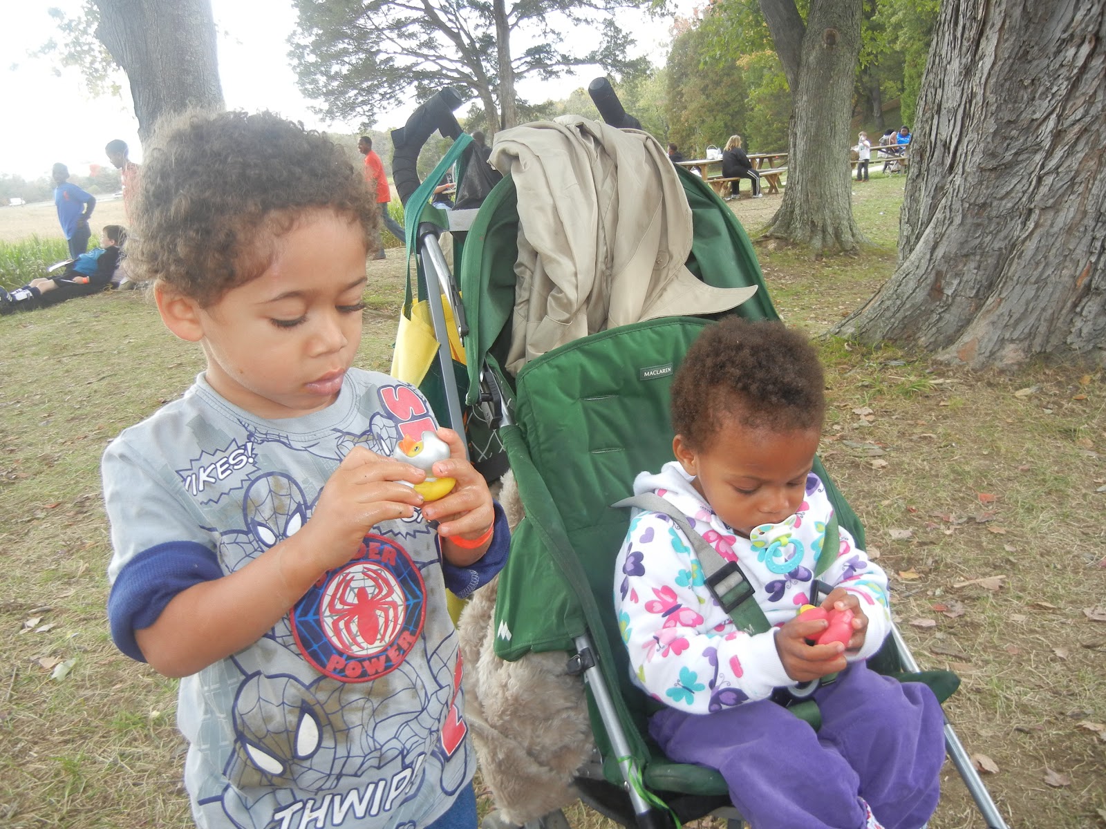 The boys mined the minerals for treasure. Jonah & Vera raced rubber duckies. After that they ran as fast as they could straight to the hay maze for kids... they loved that! Then Jonah,Vera & I jumped on the cow tractor train... Moo Moo (not choo cho!). We met up with our buddies and attempted to build our scarecrows. Our buddies built theirs - but Jonah & Vera escaped and would not leave the pit of corn kernels?!?! This thing was like a sand box but filled with corn kernels and various toys. Jonah and Vera thought this was the greatest thing ever!!!! I attempted to build the scarecrow in like 5 minutes while I sort watched my kids rolling around in the corn. Let's just say our buddies helped us out on this one...